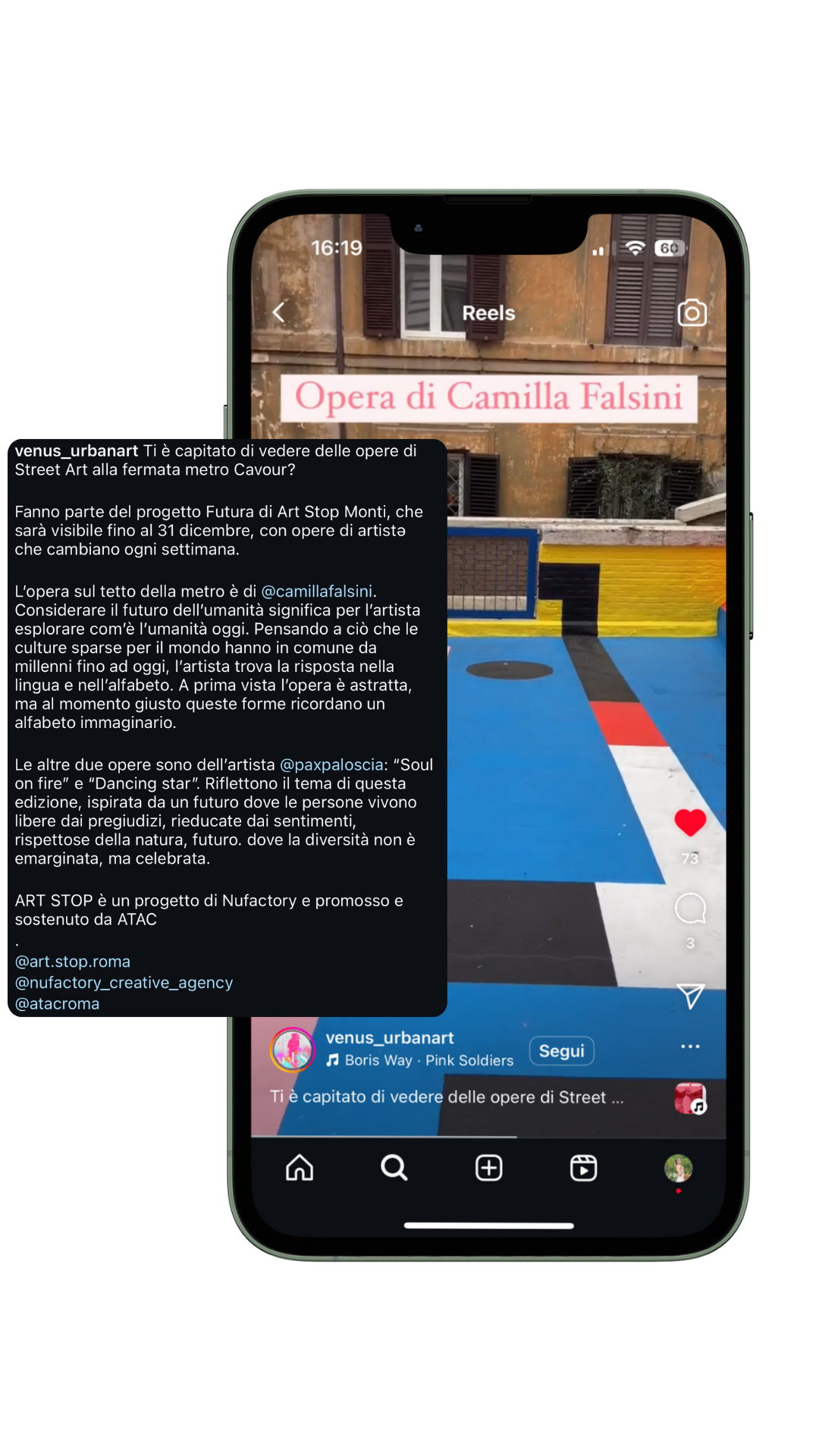 Obiettivo: Amplificare la visibilità dell’associazione, creando contenuti che celebrano l’empowerment femminile e attirano un pubblico appassionato di arte urbana.