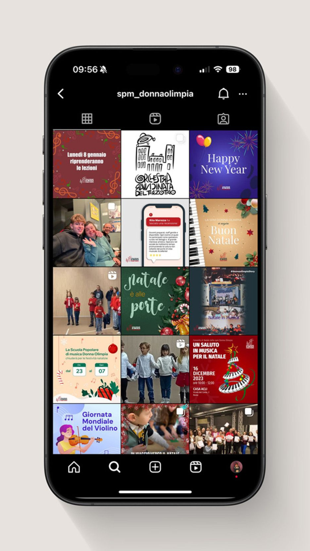 Piano editoriale: Pubblicazione di post, storie e reel per coinvolgere il pubblico locale.