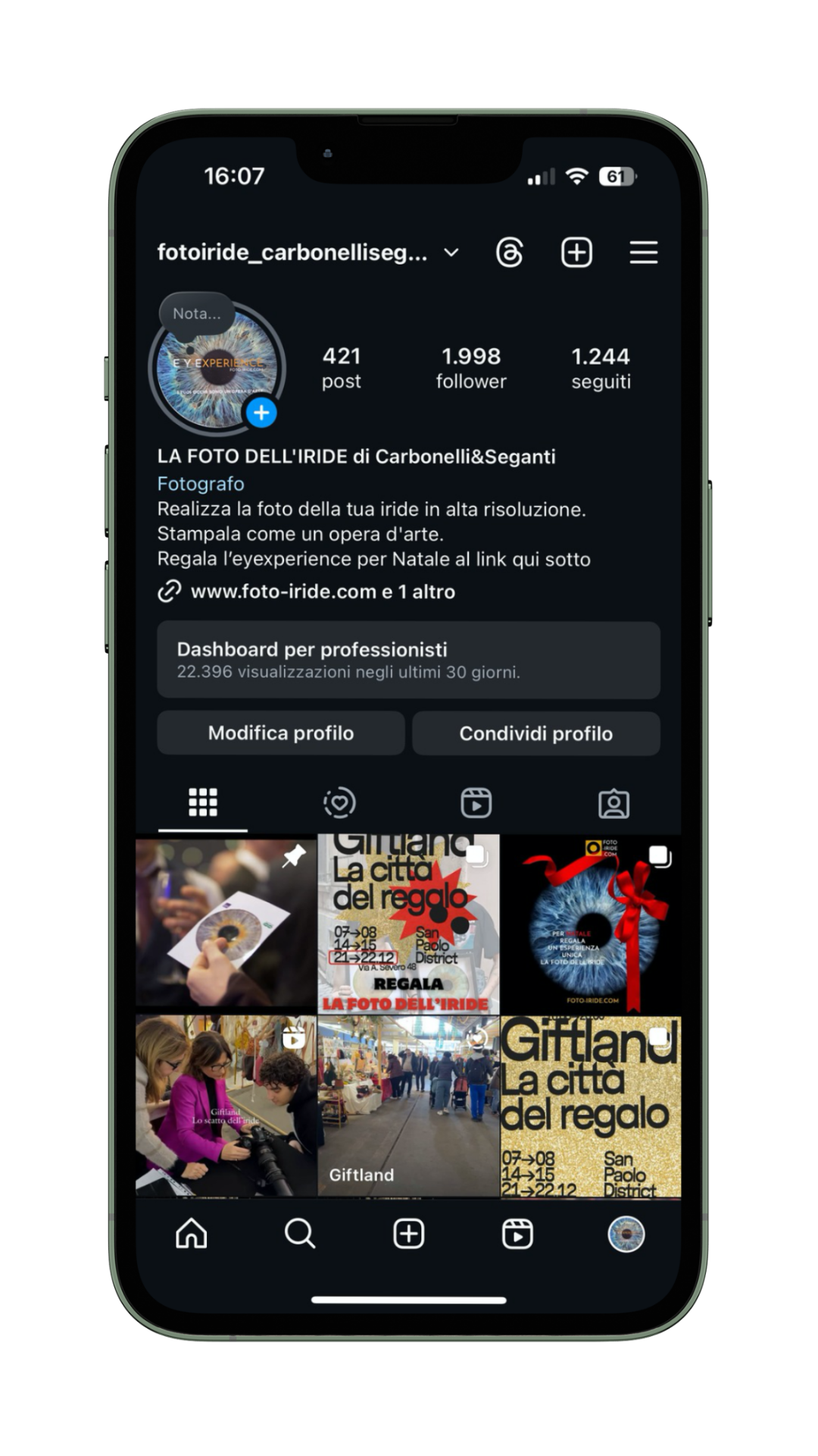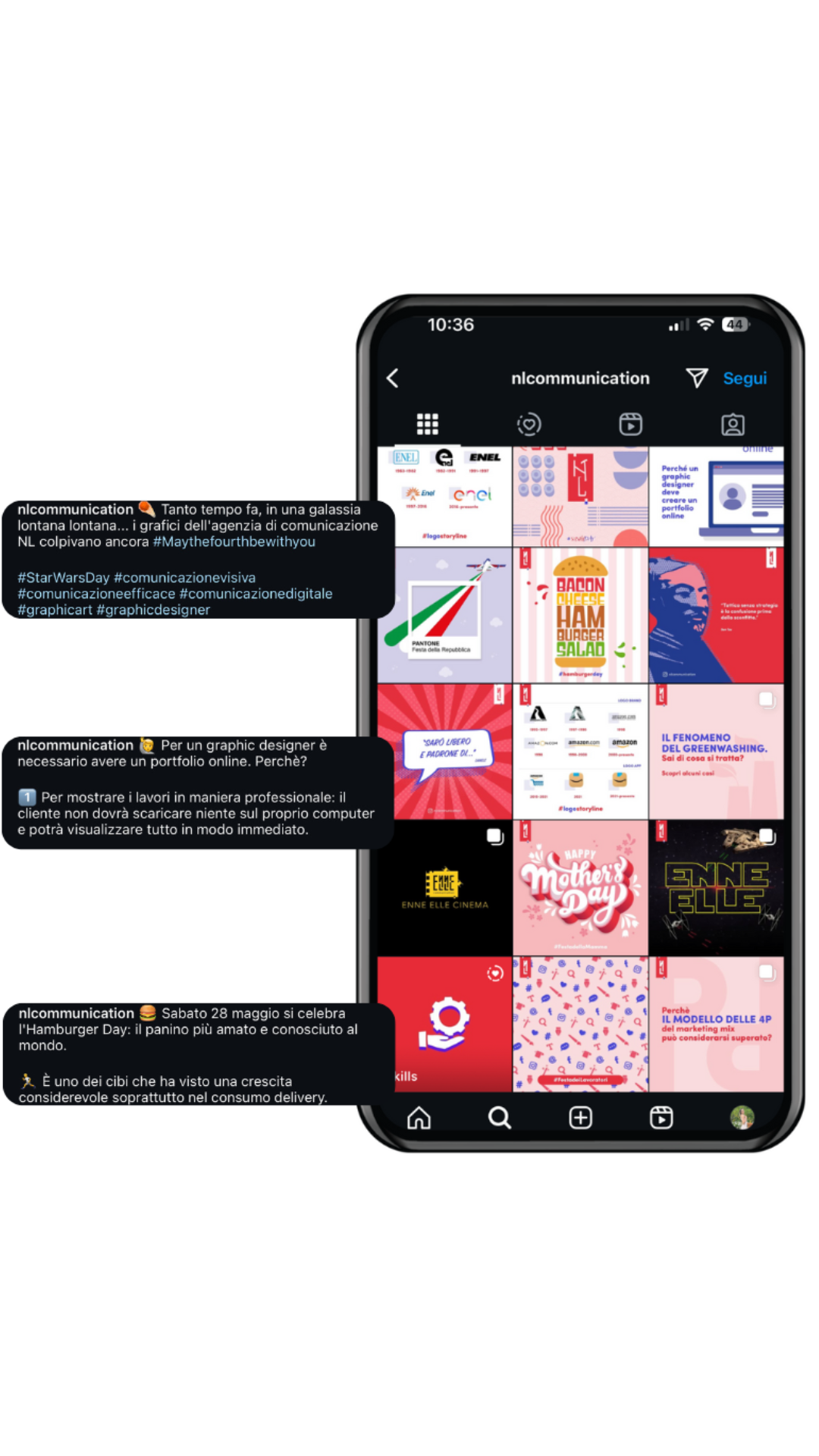 Gestione del profilo Instagram: Supervisione completa della presenza social, con focus su coerenza visiva e stilistica.